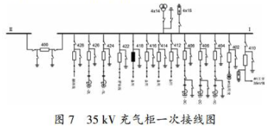 在某變電站結(jié)合新投設(shè)備首次停電檢修時對35kV充氣柜進行了例行試驗,包括交流耐壓試驗、回路電阻測試和斷路器機械特性測試。35 kV充氣柜一次接線圖如圖7所示。