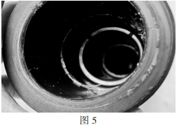 事端分支箱電纜終端所運用的硅脂密封功用不良,故障發(fā)生后,當拆撥其它兩相電纜頭時,由于硅脂出現(xiàn)干枯粘結(jié)(如圖5),需求多人合力才華撥出,可見硅脂已不能起到光滑防潮與絕緣的效果,不能與電纜頭同“呼吸”,彈性功用大為下降。