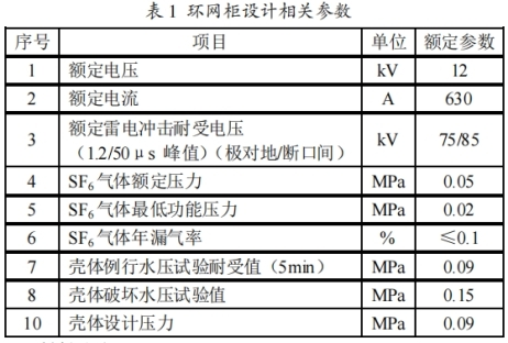 環(huán)網(wǎng)柜殼體外形不同有箱式和筒式之分。由于箱式構(gòu)造有利于完成進(jìn)出線(xiàn).配電計(jì)劃的實(shí)施,但是箱式在接受壓力的局限性,使箱體不可以接受太高的壓力。下面引見(jiàn)一種環(huán)網(wǎng)柜氣箱的規(guī)劃方法。與氣箱規(guī)劃有關(guān)的環(huán)網(wǎng)柜額外參數(shù)見(jiàn)表1。