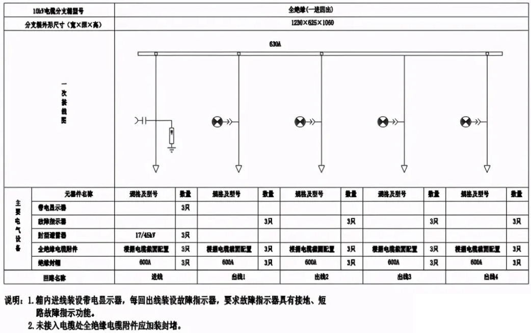 電纜分支箱用于非主干回路的分支線路,作為末端負(fù)荷接入用電使用,適用于中小客戶集中區(qū)域進(jìn)行負(fù)荷分接時(shí)的接入用電,不應(yīng)接入主干環(huán)網(wǎng)及聯(lián)絡(luò)。電纜分支箱采用電纜進(jìn)線1回,出線2回或4回,出線回路數(shù)可根據(jù)使用需要選用,額定電流為630A。采用全絕緣、全封閉、全屏蔽可觸摸式結(jié)構(gòu),以及采取防凝露、防內(nèi)部故障電弧外泄等措施。