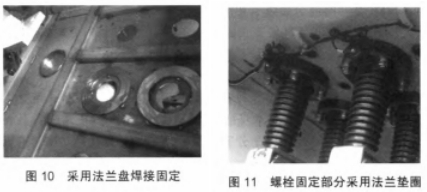 (3)穿墻套管與開關(guān)柜底板密封固定部位選用法蘭盤焊接固定設(shè)備,如圖10所示,確保穿墻套管與開關(guān)柜底板觸摸部分平整無變形。一起螺栓固定部分選用法蘭墊圈,如圖11所示,確保了螺栓緊固力均勻作用于穿墻套管,然后消除了穿墻套管密封固守時(shí)的不均勻固定應(yīng)力。