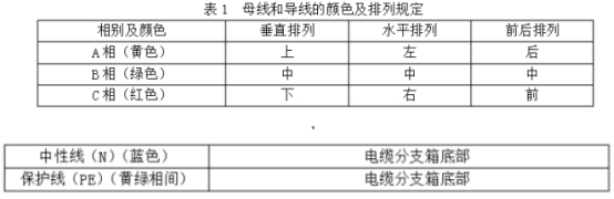 (1)選用選用矩形母線,材料為T2電工銅。并選用不同相色熱縮套管做絕緣處理。熱縮套管不得開裂和起皺,母線接頭處用熱縮絕緣盒關閉。絕緣熱縮護套材料應具有阻燃、防腐、抗老化的要求,老化壽數不小于30年,具體試驗辦法和要求參照GB/T2951.14中規(guī)則實施。(2)銅排截面的挑選應確保能夠耐受IEC60298中引薦的額外短時耐受和峰值耐受電流的要求,N相(L0)母線與三相母線規(guī)范相同,PE排截面不低于相排截面的1/2。其間設于野外的低壓電纜分支箱配備4根母排(3L+PEN),設于戶內的低壓電纜分支箱配備5根母排(3L+N+PE)。(3)設備中母線和導線的色彩及擺放應契合GB/T4026和GB7947及表1的規(guī)則;