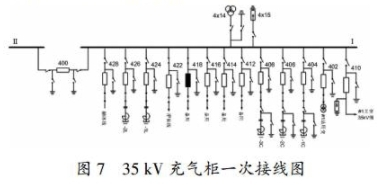在某變電站結(jié)合新投設(shè)備初度停電檢修時(shí)對(duì)35kV充氣柜進(jìn)行了例行實(shí)驗(yàn),包含交流耐壓實(shí)驗(yàn)、回路電阻查驗(yàn)和斷路器機(jī)械特性查驗(yàn)。35 kV充氣柜一次接線圖如圖7所示。